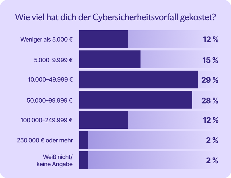 Die Umfrage legt nahe, dass weit über 1 Million kleine und mittlere Unternehmen in den von uns untersuchten Märkten im letzten Jahr einen Cyberangriff erlitten haben. Fast alle von ihnen mussten Kosten und Betriebsstörungen hinnehmen.