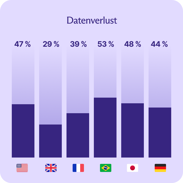 Unter den von einem Datenleck betroffenen Unternehmen lagen brasilianische Unternehmen beim Datenverlust über dem Durchschnitt: Mehr als die Hälfte (53 %) gab dieses Ergebnis an.