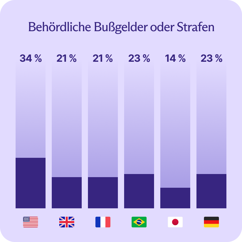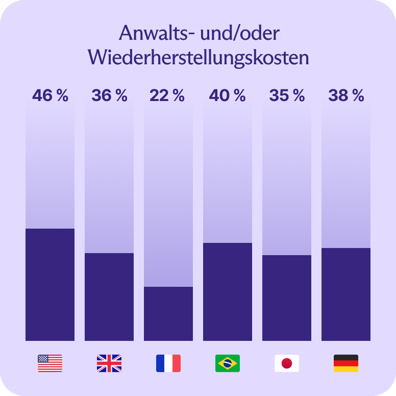 Rechts- oder IT-Sanierungskosten betrafen alle Märkte, aber die Rate in Deutschland war am höchsten (38 %), wahrscheinlich getrieben durch strengere Datenschutzanforderungen.