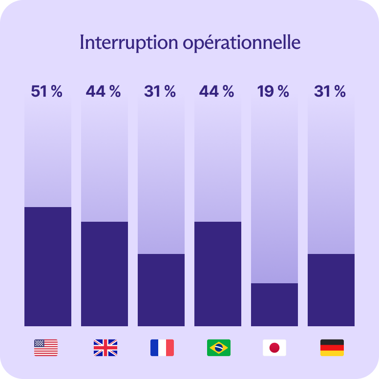 Le pire a été observé aux États-Unis, où plus de la moitié des PME touchées par une cyberattaque (51 %) ont déclaré avoir subi des temps d'arrêt ou des perturbations opérationnelles, arrêtant leurs activités.