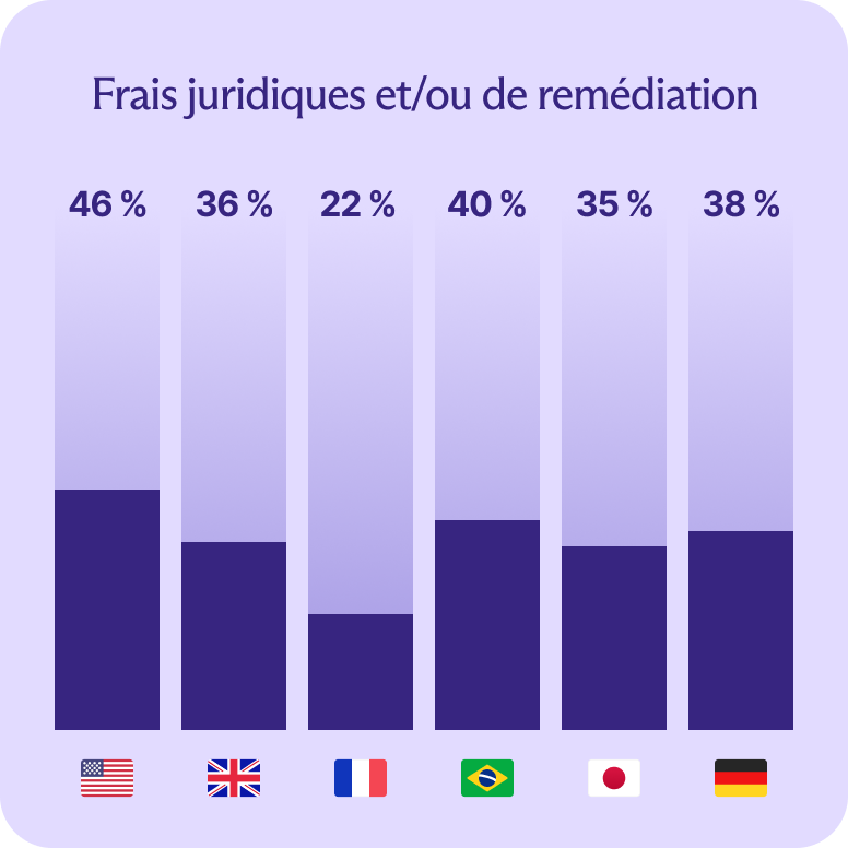 Les frais de remédiation juridique ou informatique ont touché tous les marchés, mais le taux de l'Allemagne était le plus élevé (38 %), probablement dû à des exigences de protection des données plus rigoureuses.