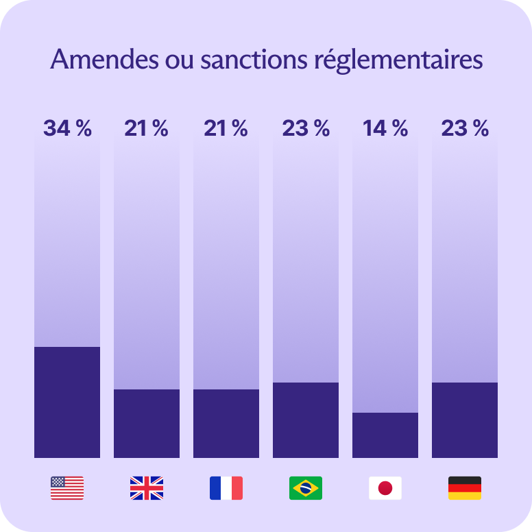 Les entreprises japonaises, qui ont été les moins touchées par les cyberattaques, étaient également les moins susceptibles d'avoir payé des amendes ou des pénalités réglementaires (14 %).