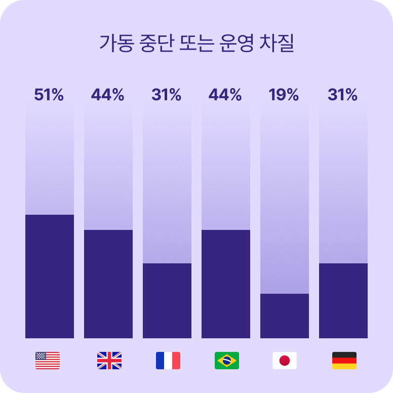 미국이 가장 심각했으며, 사이버 공격을 받은 중소기업의 절반 이상(51%)이 다운타임이나 운영 중단으로 인해 비즈니스가 멈췄다고 답했습니다.
