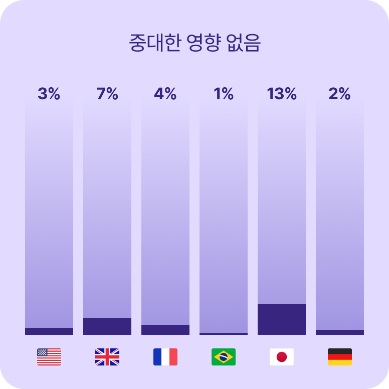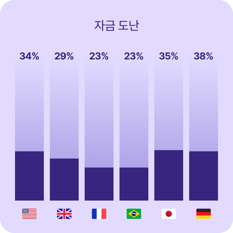 사이버 공격의 영향을 가장 적게 받은 일본 기업은 벌금이나 규제 처벌을 납부할 가능성도 가장 낮았습니다(14%).