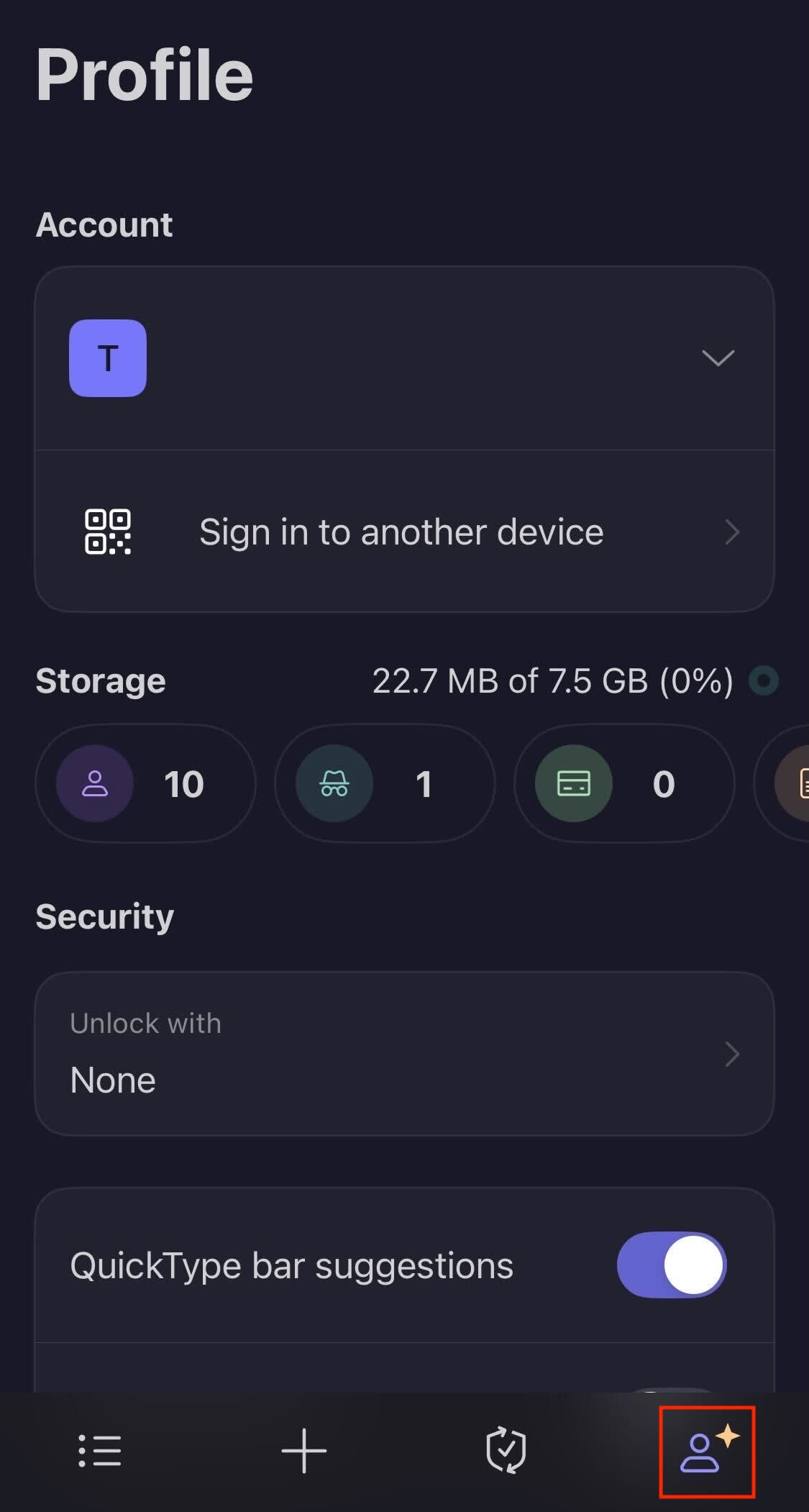 1. Select the profile icon.