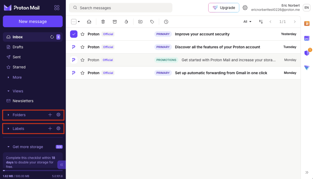 Users on a Proton Free plan are limited to creating three folders and three labels. On any paid Proton Mail plan you can create unlimited folders and unlimited labels.